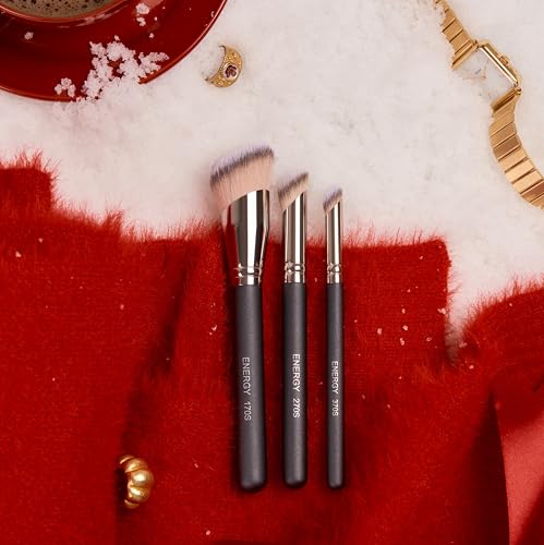 ENERGY 3-in-1 Makeup Brush Set with Travel Pouch Portable, including Foundation Brush, Concealer Brush (Gift for Her, Gift for Woman)