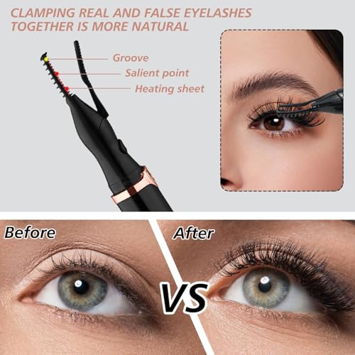 【Portable Electric Eyelash Curler】Real and false eyelashes are combined into one, curling naturally. The curved brush head fits the eyelash line perfectly, and the anti-scalding comb prevents burns.