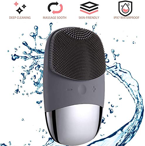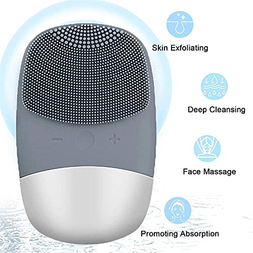 Facial Cleansing Brush, 3 in 1 Electric Silicone Face Massage Brush, IPX7 Waterproof Face Scrubber, USB Rechargeable Face Skin Cleanser for Blackhead Remove, Exfoliating, Deep Cleanning (Gray)