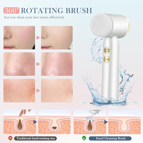 💖【360° Rotating Cleansing Brush】The facial cleansing brush with the ability to rotate 360° enables access to hard-to-reach spots like the nose and sides of the T-zone. It can deep clean and remove makeup, help unclog the skin pores and combat acne.