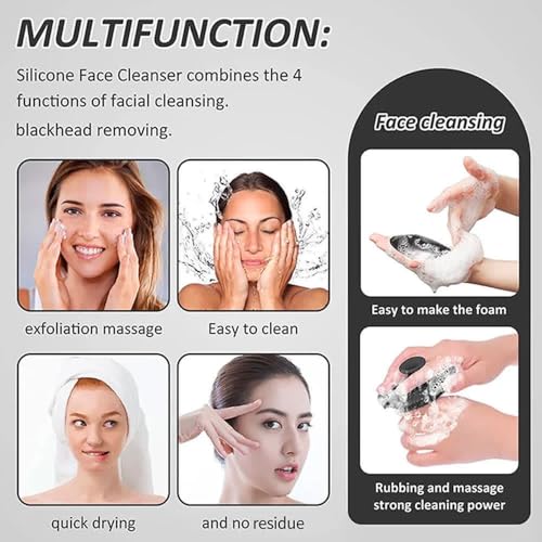 Silicone Face Scrubber Body Scrubber Face Scrub Brush Silicone for Shower Easy Grip Brush for All Kinds of Skins-Easy to Use and Clean (Black)