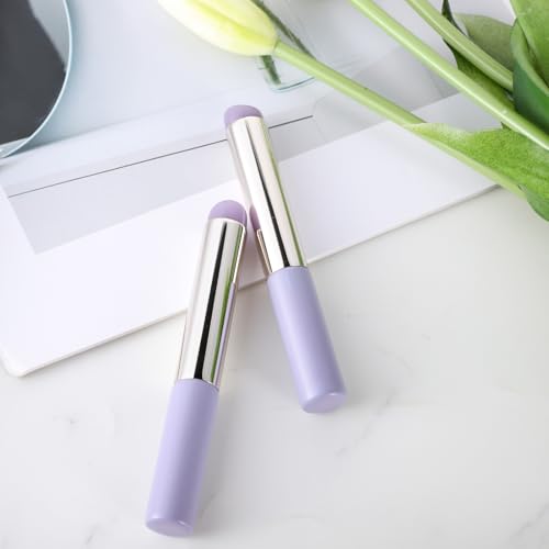 2 Pcs Silicone Lip Brush Purple Silicone Lip Applicator Lips Brush with Dust Cap for Lipstick Lips Tint Makeup Brushs Mask Gloss Concealer Applicator