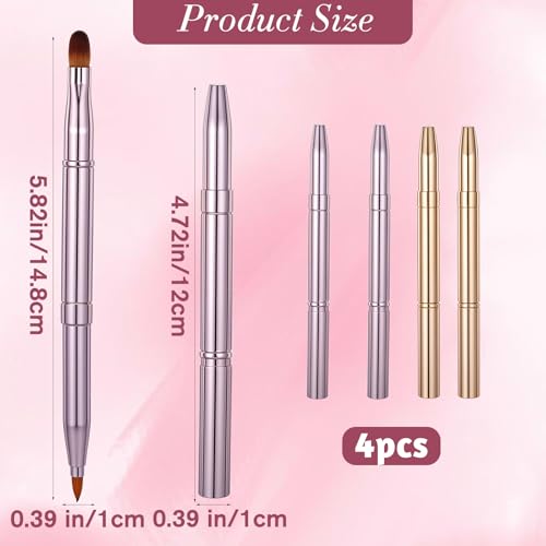 Qianyu 4 Pcs Double-ended Retractable Lip Makeup Brushes for Lipstick Lip Gloss Travel Lipstick Gloss Makeup Lip Brushes with Cap for Lipstick Lip Gloss Eyeshadow Lip Brush Set (Gold + Pink)