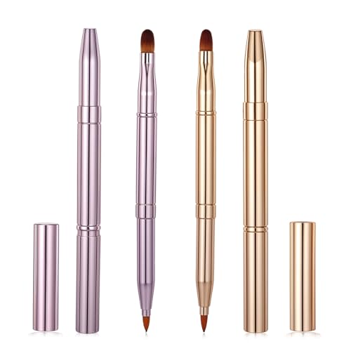 Qianyu 4 Pcs Double-Ended Retractable Lip Brush for Lipstick Lip Gloss Double-Ended Gold Lipstick Makeup Brushes for Travel Lightweight Handbag Ready Applicator Handbag Ready Christmas Gifts