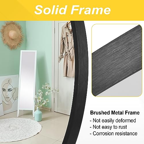 Frumenship Black Round Mirror, 76×76 cm Round Wall Mirror with Metal Frame for Bathroom, Vanity, Bedroom, Living Room