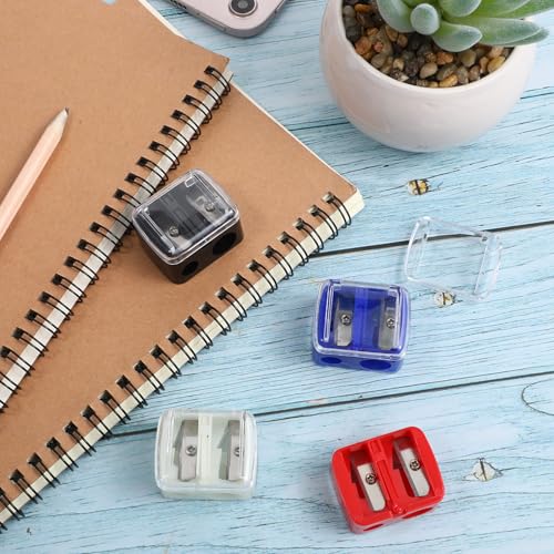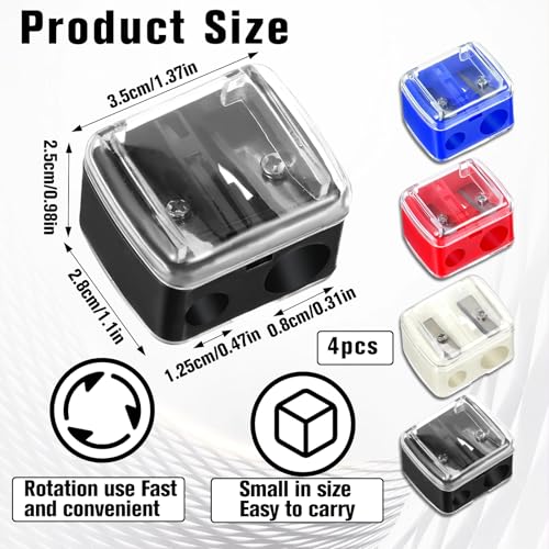 BOHUIZ 4 Pcs Cosmetic Pencil Sharpener, Eyeliner Sharpener for Large and Small Lip, Eye and Brow Pencils, Eyeliner, Lip Liner, 2 Holes Makeup Sharpener, Catches Shavings, Compact, Easy to Clean