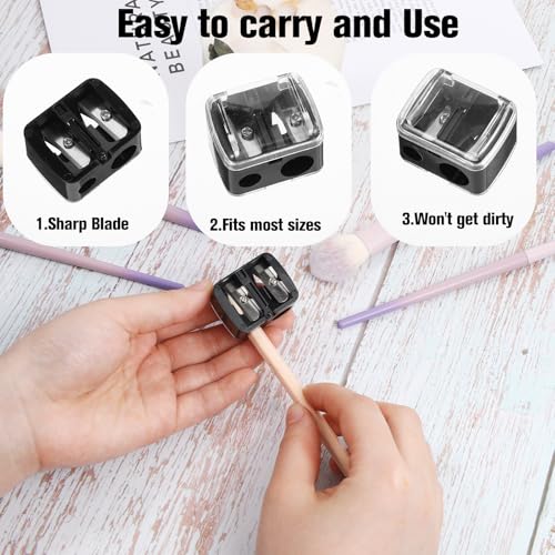 Dual Cosmetic Sharpener: 2 sized holes for large and small cosmetic pencils. Our eyebrow pencil sharpener offer 2 different sharpening blades. This eyeliner pencil sharpener can take both small & big pencil sharpeners makeup