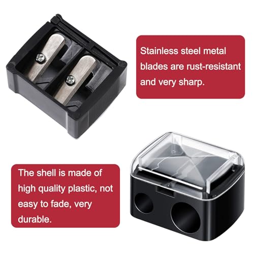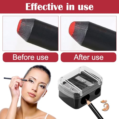 【Two Sizes】:Our eyeliner pencil sharpeners offer 2 different sharpening blades, 8MM and 12MM two hole diameters. This eyeliner pencil sharpener can sharpen both small and large pencils. The clear lid prevents shavings from falling out.