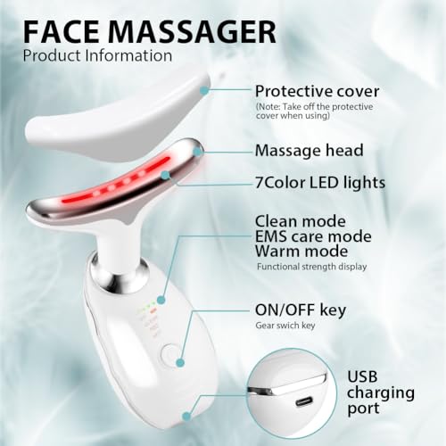 ACWOO Face Massager, Face Lifting Device, 7 Color Electric Skin Tightening Machine Neck Lift, Anti-Wrinkle Face Device with 45±5°C Heat EMS Massage and 3 Mode, Eye Sculptor for Skin Care, Anti Aging