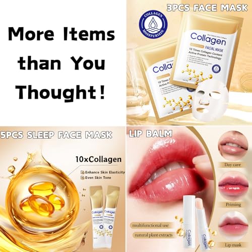Collagen Skincare Set 13PCS, Anti Aging Skin Care Set: Face Cleanser & Face Serum & Eye Cream & Face Cream & 3PCS Face Mask & 5PCS Sleep Mask & Lip Balm, Reduce Wrinkles, Skin Care Gift Sets for Women