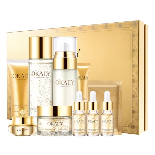 ‌【O’kady Anti-Aging Skincare Set for Women‌】Infused with Golden Peptide Complex to lock in moisture, revitalize elasticity, soothe skin, boost collagen, reduce fine lines and dark circles, and lift and firm the skin for a smoother, tighter, and more radiant complexion.