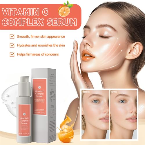 🌞【Advanced Anti-Aging & Firming Power】Vitamin C Complex Serum for Face, enriched with Hyaluronic Acid and Vitamin E, to visibly reduce signs of aging. Target 10 key concerns—including wrinkles, elasticity loss, and uneven texture—our anti-aging facial serum delivers firmer, plumper skin. This hydrating serum boosts collagen production while smoothing neck lines and pores