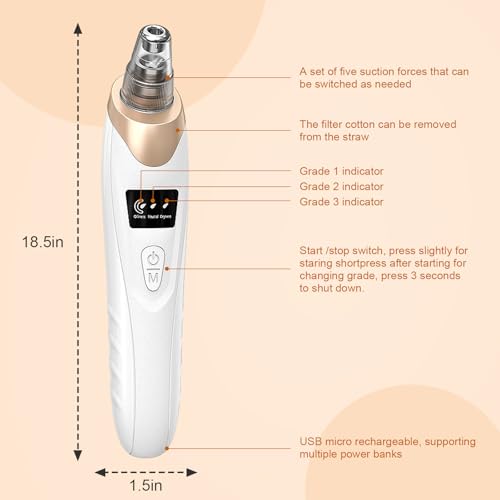 IGEAIIE Blackhead Remover Vacuum, Pore Vacuum with 5 Replaceable Suction Heads, 3 Adjustable Suction Power Modes Blackhead Brushes for Deep Cleansing