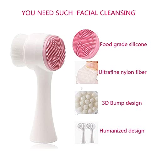 Manual Facial Brush Cleansing, Double-Sided Face Wash Brush with Face Massager Brush, Ultra-Soft Manual Exfoliating, for Deep Cleansing,Removing Blackhead and Massaging Pink
