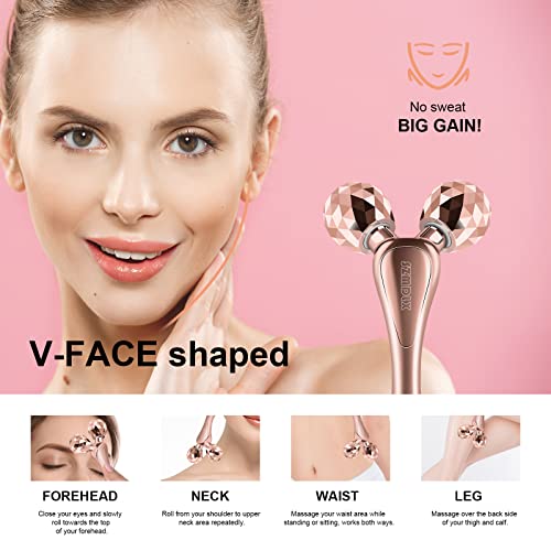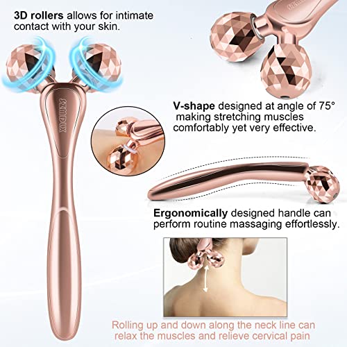 3D Facial Massager Rollers Facial Lifting Massager, Skin Care Face Body Massager Firming Tools for Body Relaxation Massage, Kneading, Body Slimming and V-shaped Face Lift, Anti-Wrinkle (Rose Gold)