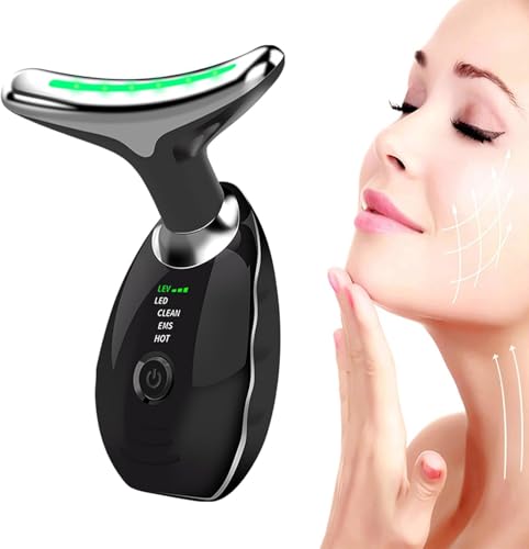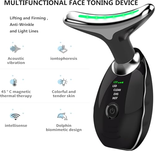 Face Massage, Anti-Aging Neck Eye Massager with 7 Colors 3 Modes, Facial Massager for Skin Care, Anti-Wrinkle Device for Slimming Face (Black)