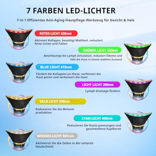 Perfect Skin Care Tool: This LED colored light rinkle educer contains 7 LED colored light modes, providing more choices for various skin problems! The curved massage head is curved and glides easily over the contours of the face, neck, décolletage and arms