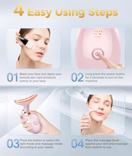 [3 MASSAGE MODES FACE NECK MASSAGER] The CLEAN Mode can clear the pores and keep your skin clean and glow; The second Mode can relax your skin, and help your skin absorb skin care products; The HOT Mode can soothe your skin with heat and and rejuvenate your skin.