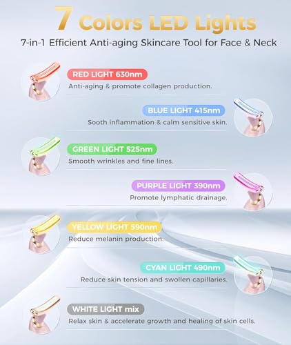 [7-IN-1 SKIN CARE] This 7-in-1 face massager has 7 different LED light modes that have various skin care functions, which is effective and multifunctional.