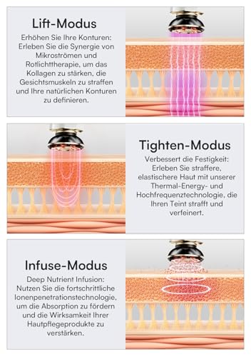 𝟑-𝐈𝐍-𝟏 𝐇𝐢𝐠𝐡 𝐓𝐞𝐜𝐡 𝐃𝐞𝐯𝐢𝐜𝐞, 𝐆𝐞𝐭 𝐒𝐩𝐚-𝐠𝐫𝐚𝐝𝐞 𝐄𝐟𝐟𝐞𝐜𝐭𝐬 𝐚𝐭 𝐇𝐨𝐦𝐞: LIFT for enhancing skin vitality, reducing wrinkles; TIGHTEN for collagen regeneration and firming; and INFUSE for improved absorption of skincare products. Tailor your routine with adjustable intensity settings for clinical results by using the INIA Skin Tightening Device. Moreover, the hydrating conductive gel included in the package can effectively improve therapeutic effects.